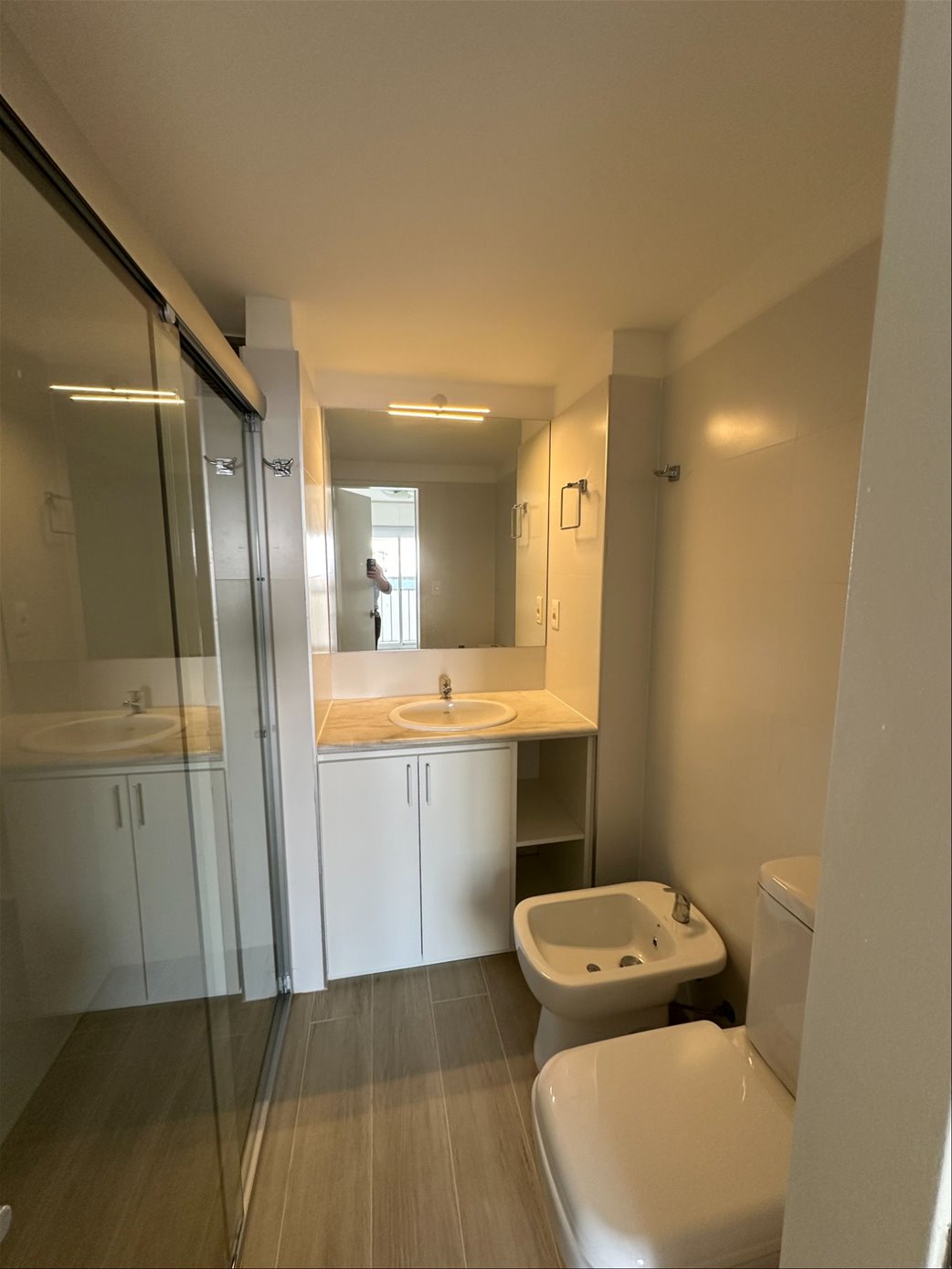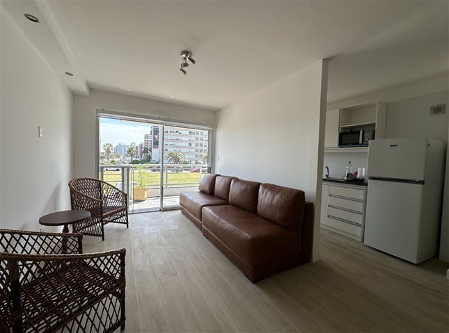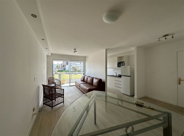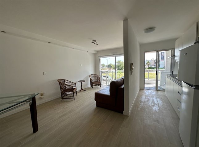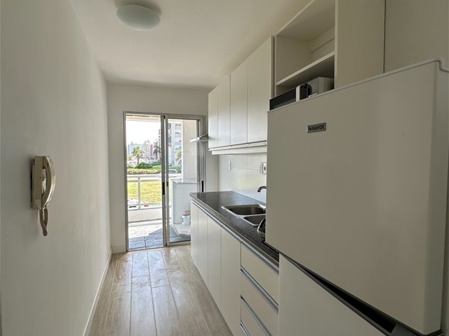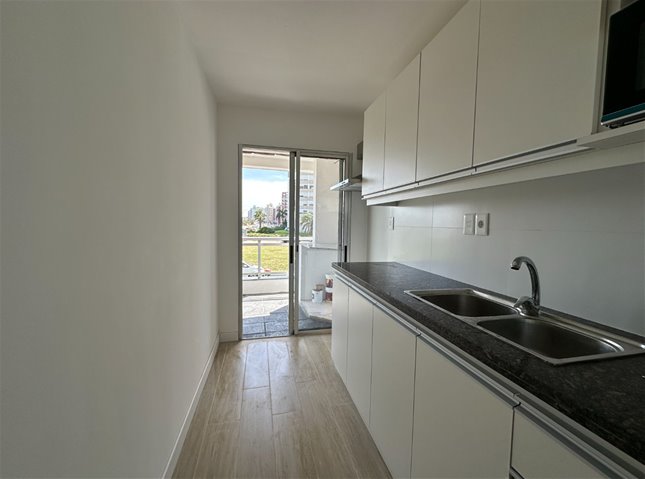 La planta se distribuye de la siguiente manera: living comedor al frente con acceso al balcón, cocina definida también con salida al balcón, dormitorio principal en suite al contrafrente, dormitorio secundario también al contrafrente y un segundo baño completo.
