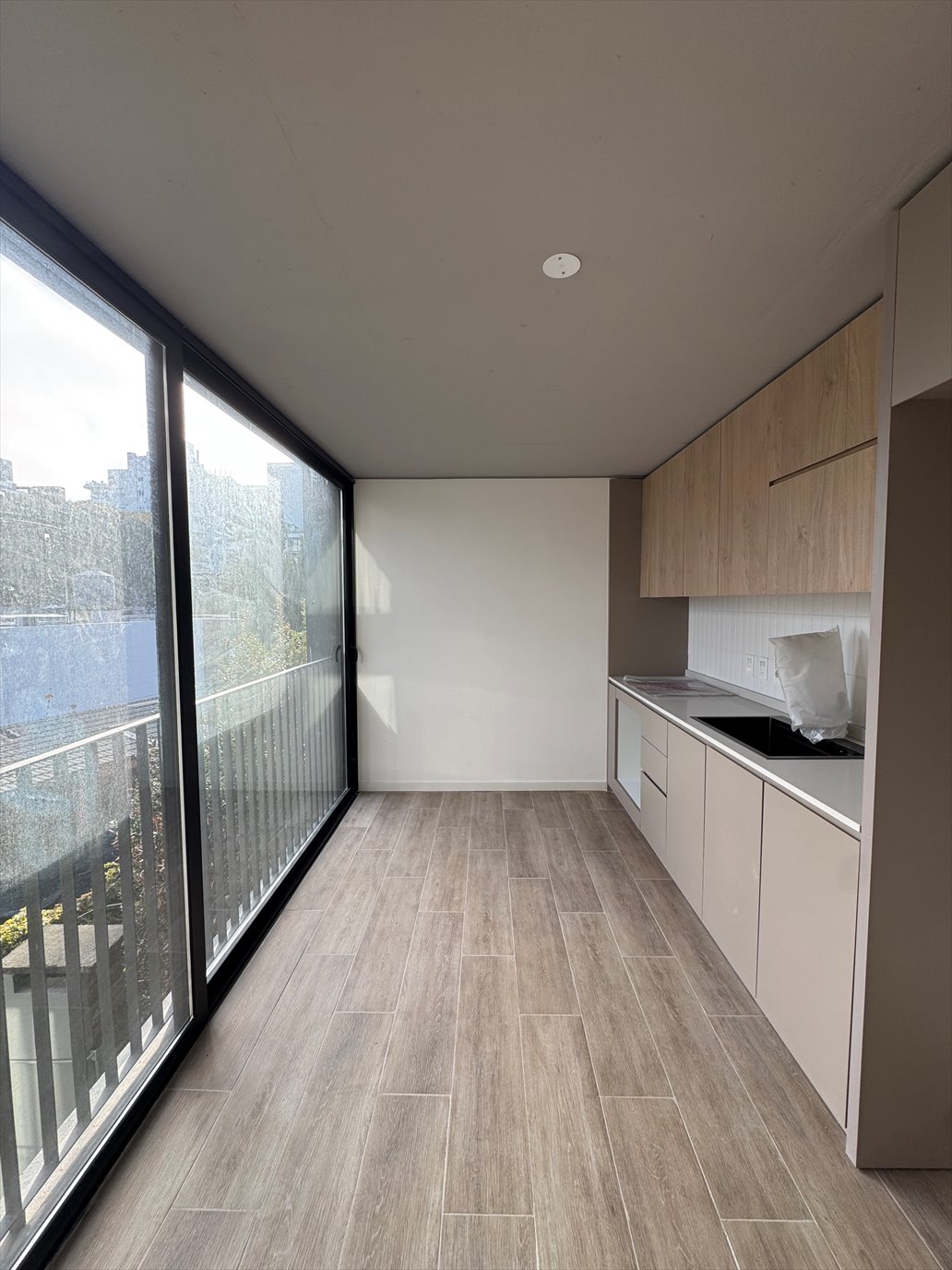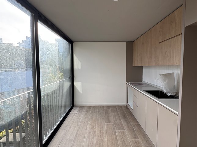 La unidad cuenta con cocina semi definida con grandes ventanales que dan mucha luz, un living comedor, 2 dormitorios y un baño completo de buenas dimensiones.