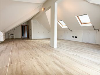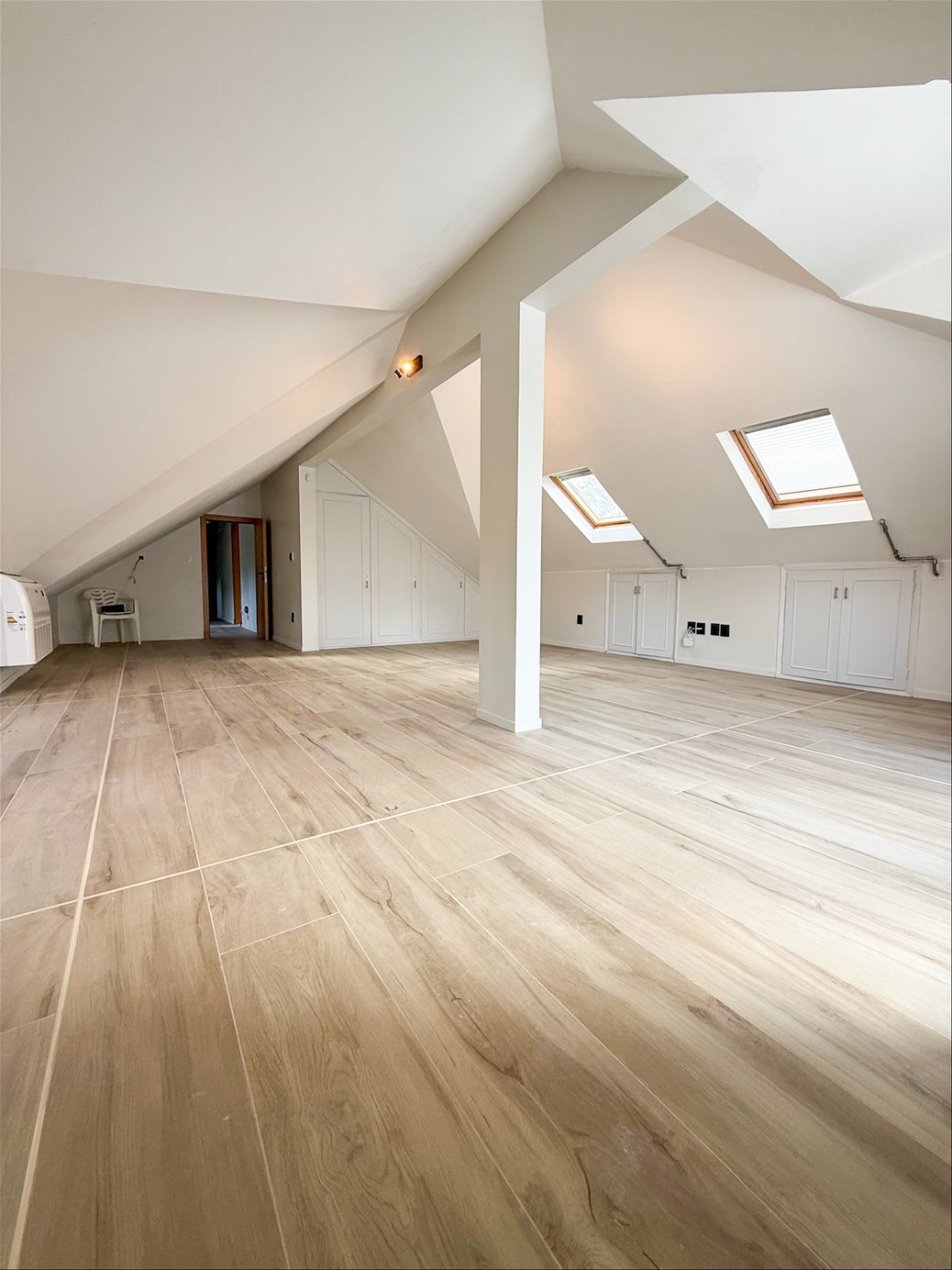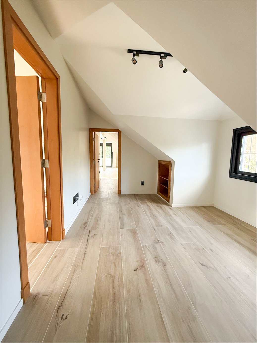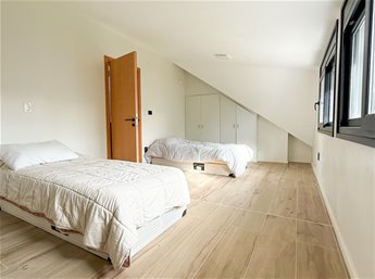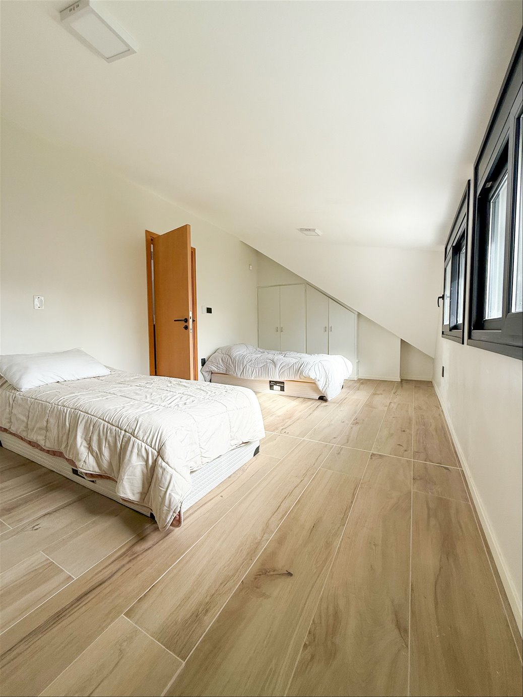 En este nivel se encuentra un tercer dormitorio con baño completo, un gran playroom con salida a terraza y posibilidad de cerramiento para un quinto dormitorio. También dispone de buhardillas con espacio de guardado.