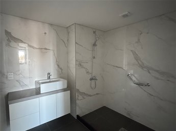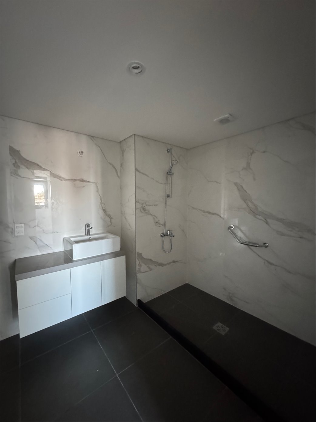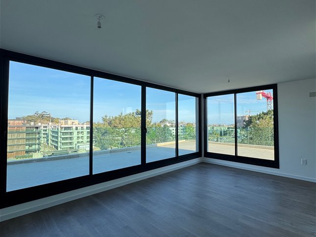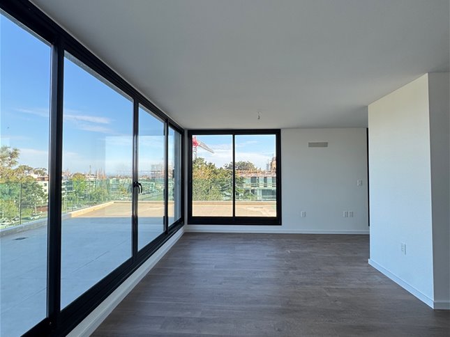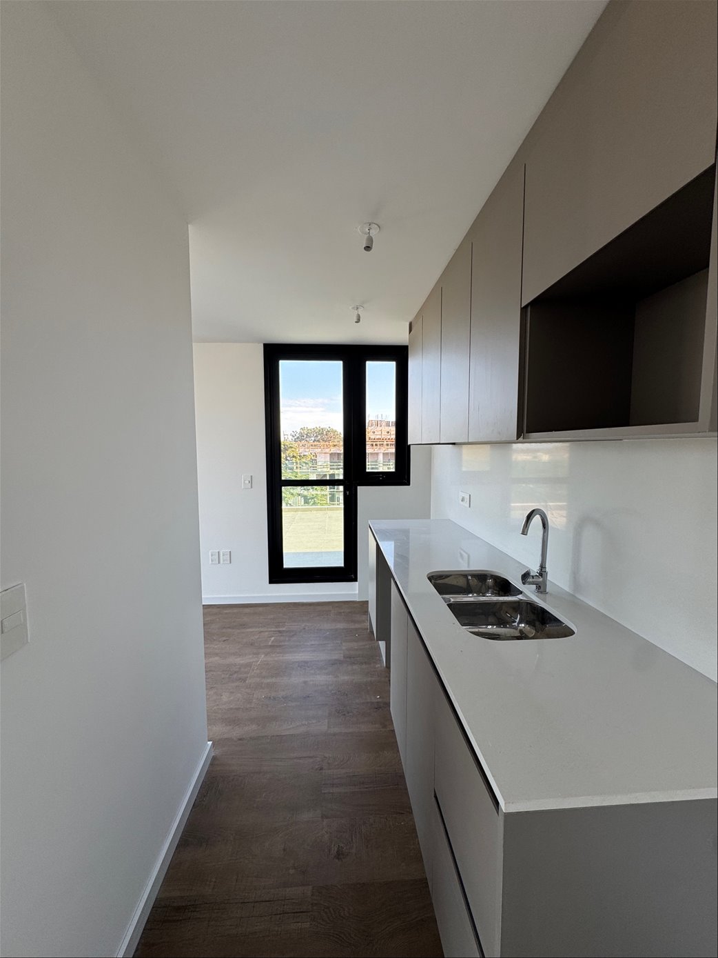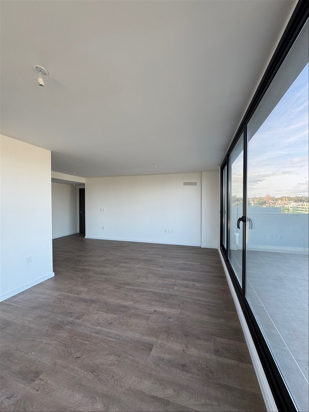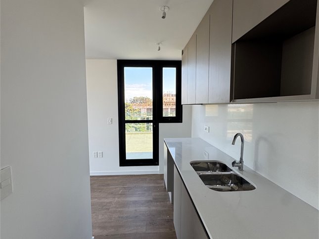 Ubicado en un piso 5 al frente, la unidad cuenta con 3 dormitorios, el principal en suite, un baño completo, espacio para escritorio o estar, y un excelente living comedor con cocina integrada con acceso a una amplia terraza de 60m2 con vista al lago.