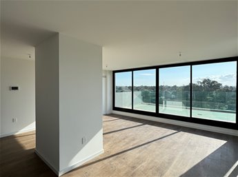 Ubicado en un piso 5, la unidad cuenta con 3 dormitorios, el principal en suite, un baño completo, espacio para escritorio o estar, y un excelente living comedor con cocina integrada con acceso a una amplia terraza de 54m2 sobre el lago.